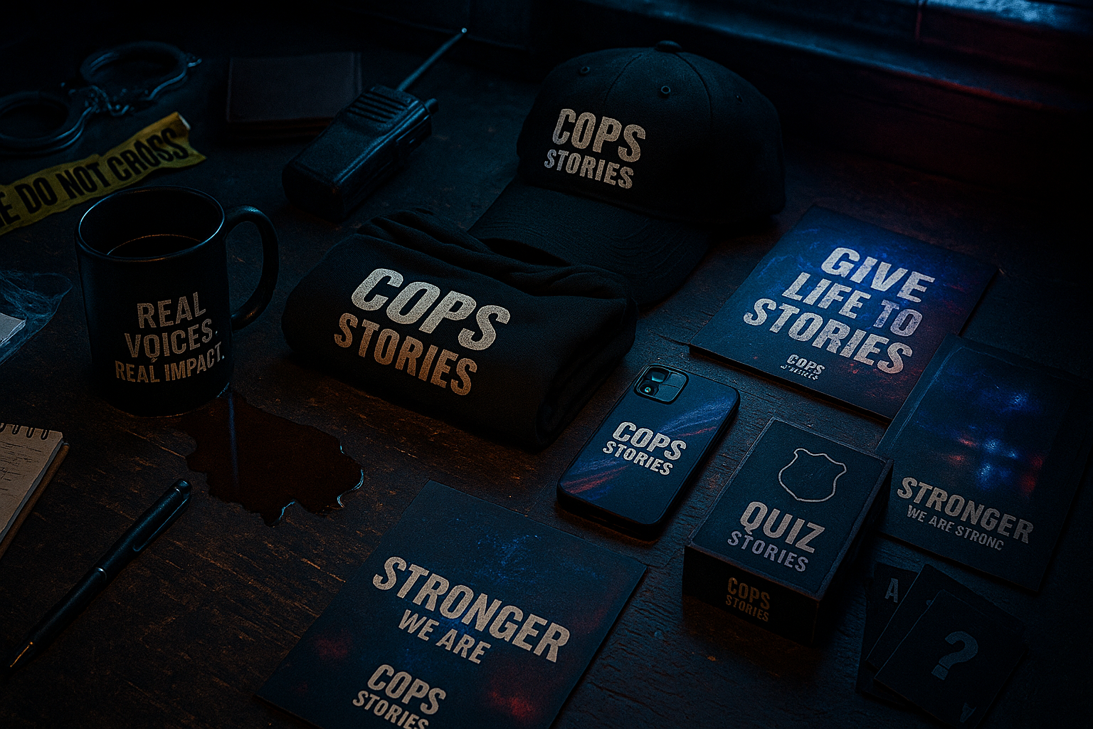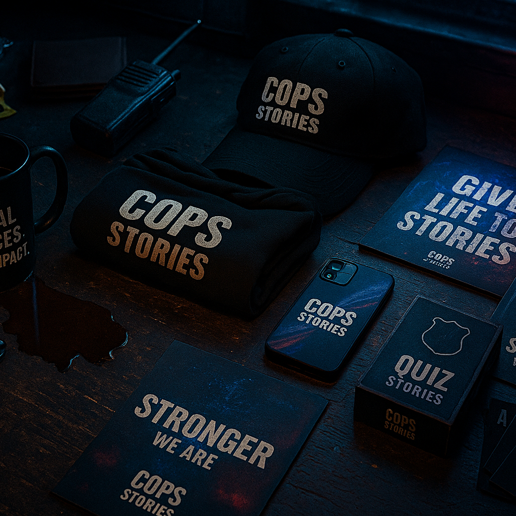 With Cops Stories you can design and launch custom products that carry your identity. Police units, security teams, or any workplace can create apparel, mugs, or gear with their own design and message. No minimum order, no hassle – we handle production and delivery. You bring the story, we turn it into products your team can wear with pride.